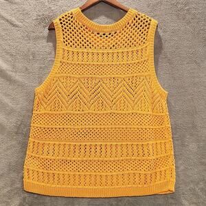 Talbots Yellow Multi Pattern Open Crochet Sleeveless Sweater Size 2X Petite