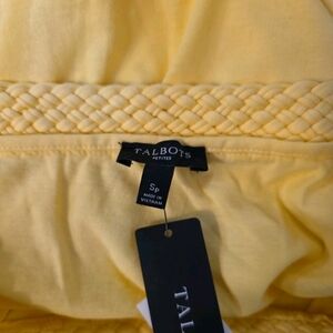 This Talbots T-shirt in size SP features a bright yellow color and a braided neckline, giving it a stylish and unique look. Made from a super soft cotton-modal blend, this basic tee is designed for petites with a round neckline and a size PS. Perfect for adding a pop of color to your wardrobe, this T-shirt is a versatile piece that can be easily dressed up or down for any occasion.Super cute Talbot's yellow NWT!
