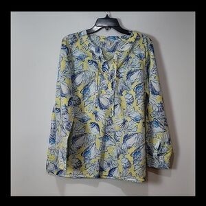 Talbots Yellow w/Blue Sea Shells Tunic Style Blouse
