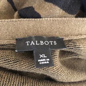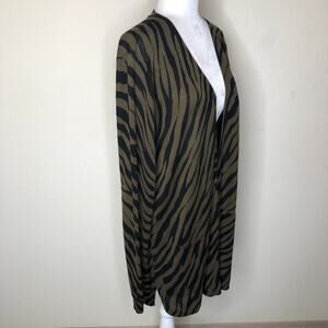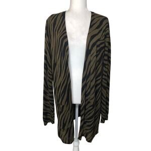 Talbots Zebra Print Open Front Cardigan Linen Cotton Blend Black Olive Green XL