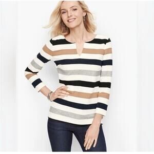 Talbots Zip Back Striped Top Black Gray Tan Size Large