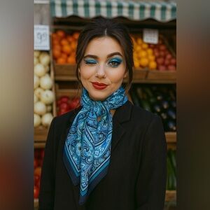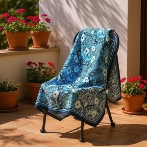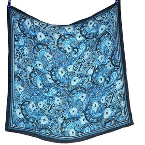 Elevate your style with this exquisite blue scarf from Talbots, featuring a classic paisley pattern. The vibrant azure hue adds a pop of color to any ensemble, while the intricate design showcases timeless elegance. Perfect for adding a sophisticated touch to your wardrobe.