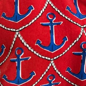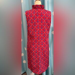 Talbots red, white and blue anchor dress with ruffle collar and gold button. Shift dress short-midi. Size 10.