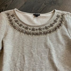 Talbots beaded snd sequin beck sweatshirt with gold n m stall UC stripes