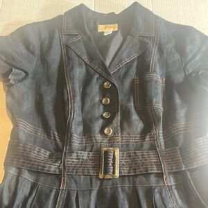 Greta condition dress A must-have addition to their wardrobe. Has 2 pockets and button down w belt. Only has small hole by zipper but hard to see as u see the arm. Thread as shown is a little bit undone and tiny little stain as shown but not noticeable