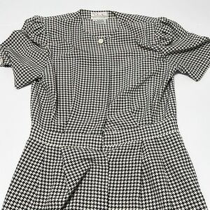 Talbots black and white button up dress, shoulder pads