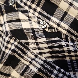Excellent pre-owned condition black and white plaid popover top. 100% cotton. 24 in pit to pit. 27.5 in shoulder to hem.