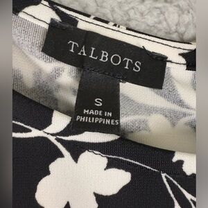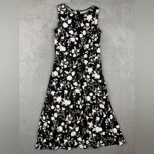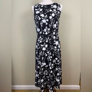 Talbots black and white floral dress spandex blend slinky material with zip back sleeveless a line preowned