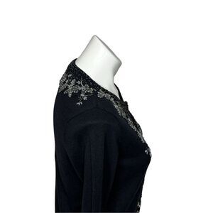 Talbots black beaded silk and cashmere blend snap up cardigan size petite