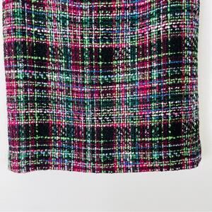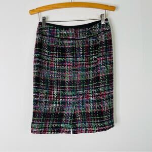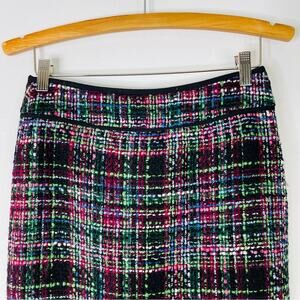 Talbots black green pink wool tweed pencil preppy midi skirt 2P