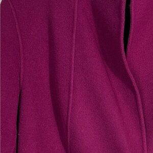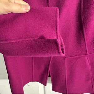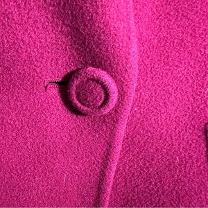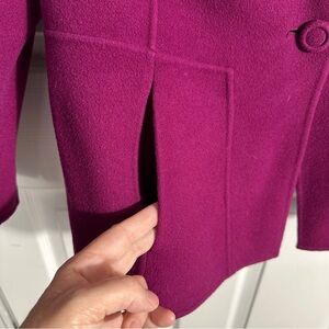 Beautiful Talbots black label jacket in a gorgeous magenta. Size 12W. Single button front closure, seaming details. 90% wool/10% nylon. Really cool slit pockets, slits at cuffs.