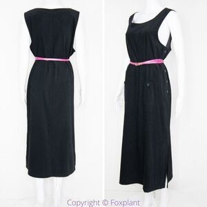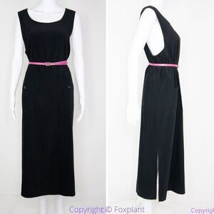 Talbots black sleeveless pockets maxi dress with button detail side slits, PL