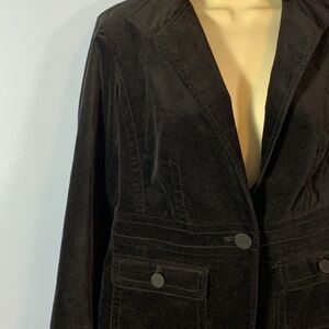 Talbots black velvet riding coat blazer size 8 petite 1 button button pockets