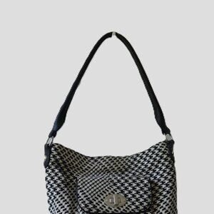 Talbots black & white Houndstooth fabric , Bucket Bag/ shoulder bag, Leather handles and trim