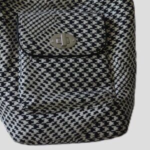 Talbots black & white Houndstooth fabric Bucket bag, Leather handles & trim, VGC