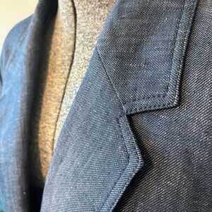 Chic denim blue jacket with a tailored fit. Ideal for versatile styling. New with tags.