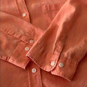 EUC Talbot’s pale orange button down women’s blouse. Has collar, 1 breast pocket and elbow length sleeves. Blouse measures 21” across and 26 1/2” top to bottom.
