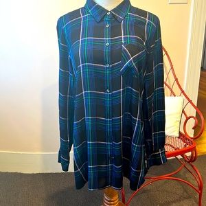 Button down blouse Black, blue, green and yellow Left Chest pocket Size L Super soft rayon, falls nicely I’m great shape