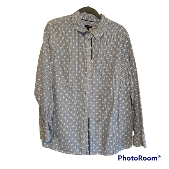 Like new blouse size 1x. Stripes with polka dot detail. 100% cotton.