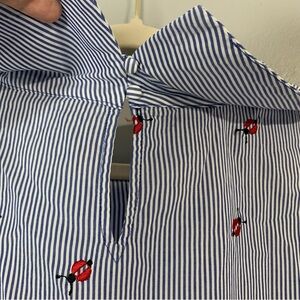 Talbots blue and white striped popover ladybug tunic blouse. Size L