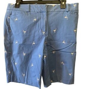 Talbots blue embroidered flamingo Bermuda shorts size 8