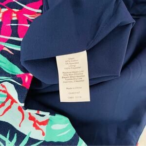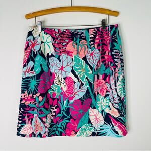 Talbots blue pink floral tropical preppy office stretchy midi skirt 12P