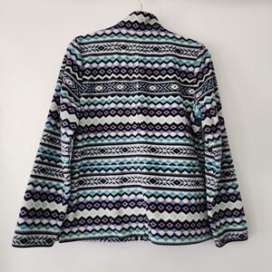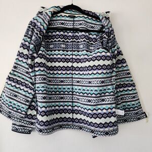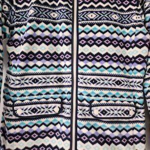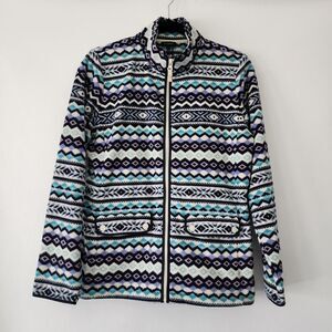 Talbots blue white Aztek full zip fleece jacket womens size M