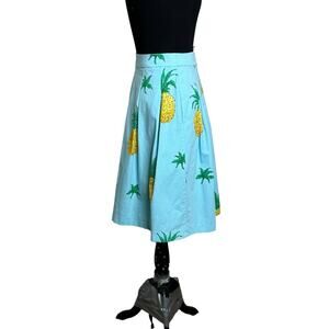 Talbots blue yellow pineapple print pleated midi skirt size 8