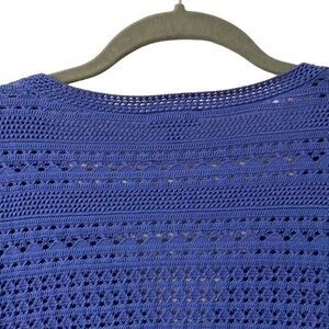Talbots blue 100% cotton open stitch sweater bracelet sleeves Small Petite. A variety of fancy knit stitches. Notch neck. Best with a cami underneath.