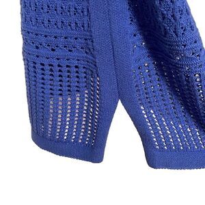 Talbots blue 100% cotton open stitch sweater bracelet sleeves Small Petite