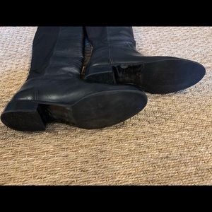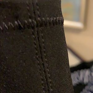 Black, genuine leather ( on front of boot) boots with back panel made of cloth neoprene. Boots were barely worn. Her may be one inch.