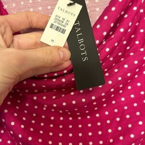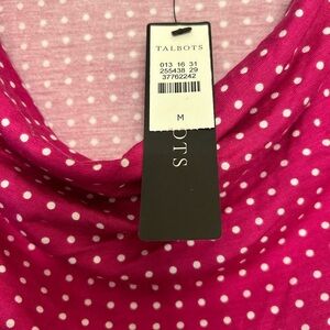Talbots bright pink and white cowl neck pocka dot new size medium top