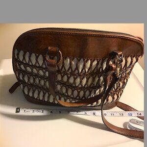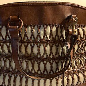 Talbots brown & cream leather and canvas bag - with detachable shoulder strap