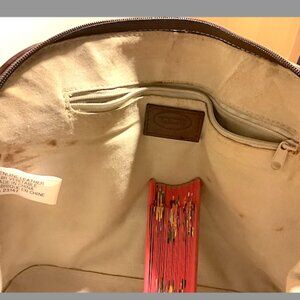 The Talbots brown & cream leather and canvas bag is a versatile and stylish accessory for women on the go.