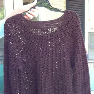 Talbots brown hand knit mercerized cotton sweater