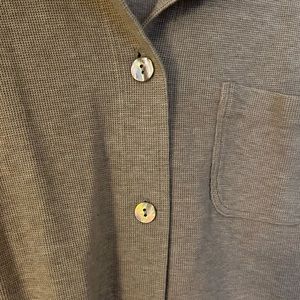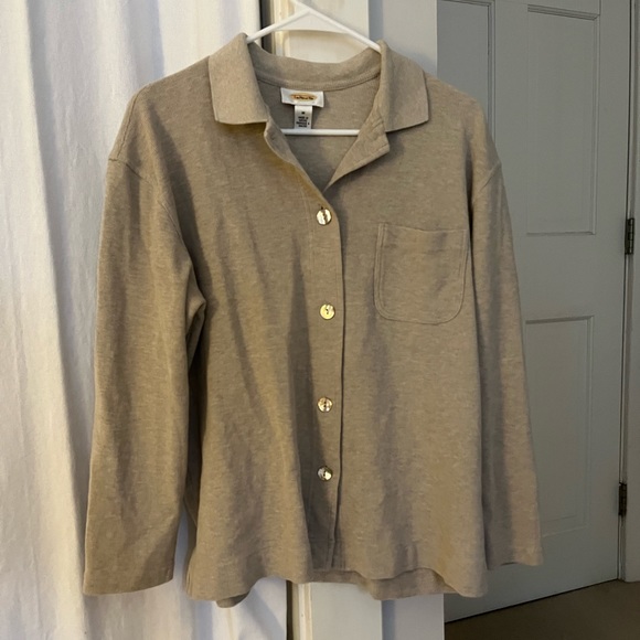 Tan light weight bottom down with beautiful detailed buttons