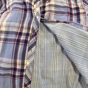 Cute plaid two patterned button down shirt. Perfect for weekend wear with jeans or leggings.