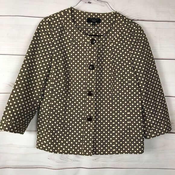 Talbots button front jacket - 3/4 sleeves Measurements are approximate while lying flat Length 21.5” Pit to pit 19” Sleeve 18” Size 10 Petite 0846