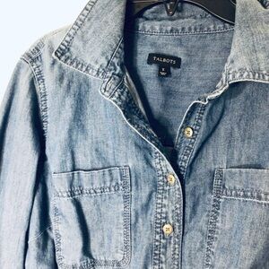Talbots button up pullover top women small blue cotton spring hobo lagenlook
