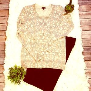 This beautiful sweater is in excellent condition, wear alone or with a blouse as seen in pic. Has