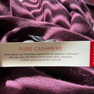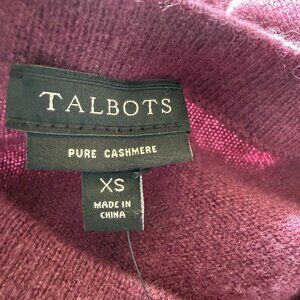 Women's Talbots pure cashmere burgundy 3/4 sleeve sweater, size XS. This is a stretchy pullover sweater with a round neckline and ribbed hem. NWT w/imperfections - two small holes - please see last two pictures circled in red. May not see with darker color cami underneath. Please feel free to ask me questions.