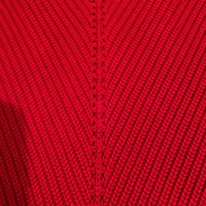Gorgeous vibrant red. Nice snd long. Looks great alone or with a blouse under it . Beautifully made