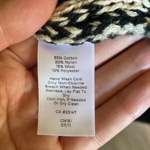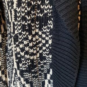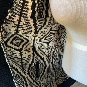 Talbots chunky knit open front black/cream boho print cardigan. Wool blend. Sz M