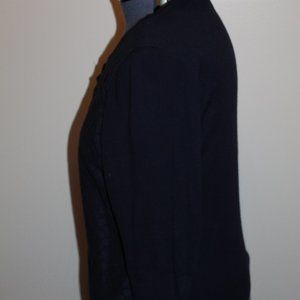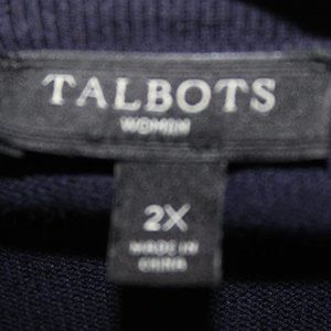 This is a classic Talbots charming cardigan with a modern circle pattern. The sleeves are 3/4. This cardigan is lightly worn and in very good shape with no identified stains or runs. This is a great little cardigan that is very versatile. Pet free, smoke free home.
