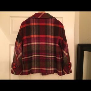 Talbots short coat( I am 5'6"). size 4. well made item, I mean good quality. excellent condition, I would say like new. light but warm and soft(shell: 65% wood, 35% viscose. lining: 52% polyester, 48% rayon). the collar can be worn with three different ways. designed to be wide like a bell.