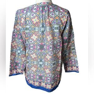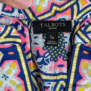 Talbots colorful Geometric Tunic Blouse Cotton V-neckline Size Small Petite