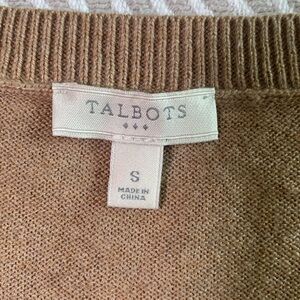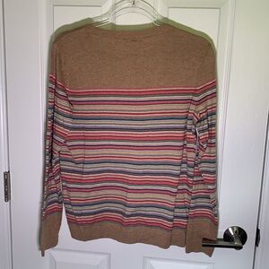 Talbots cotton blend lightweight crewneck knit top camel w/rainbow stripes small