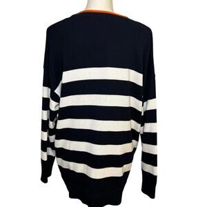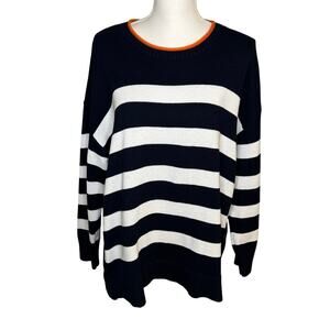 Talbots cotton blend navy stripe crew neck with snaps sweater size XL