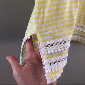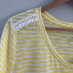 Talbots cotton blend yellow and white striped lattice lace V neck 2X tee shirt