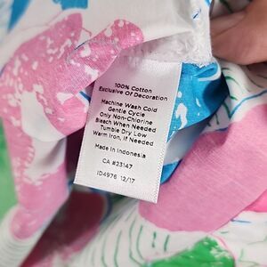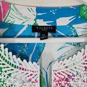 Approximate measurements in photos. No stretch all cotton. Lace bib. Bright floral colors. Vacation, beach, cruise, blouse.